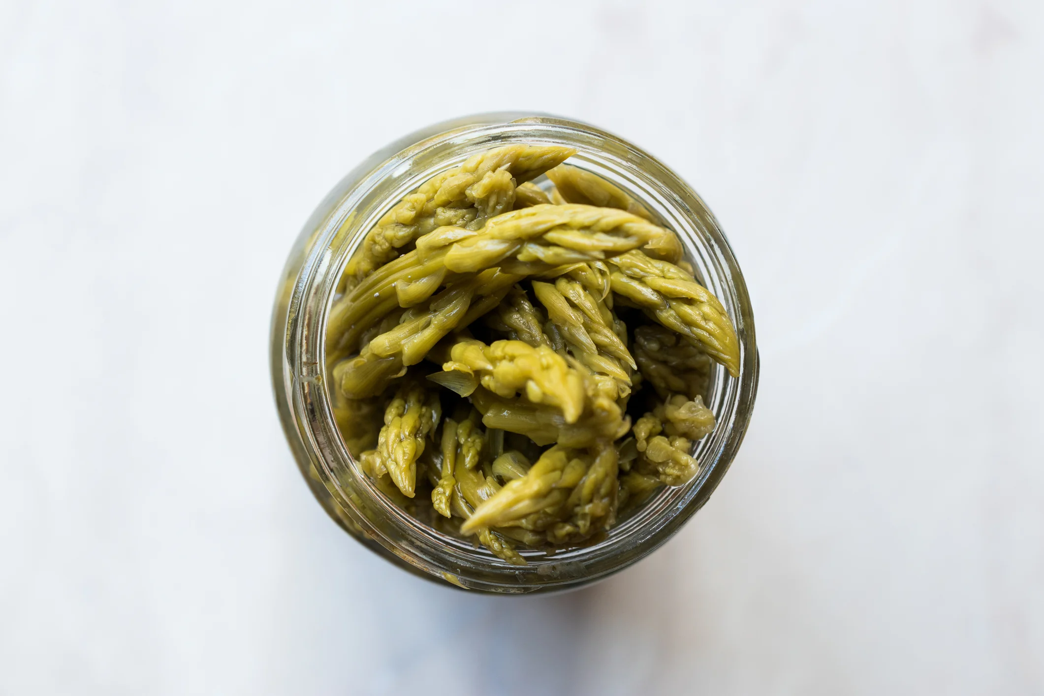 2 15-ounce Jar Sessions Pickled Green Asparagus, drained and coarsely chopped — reserve brine